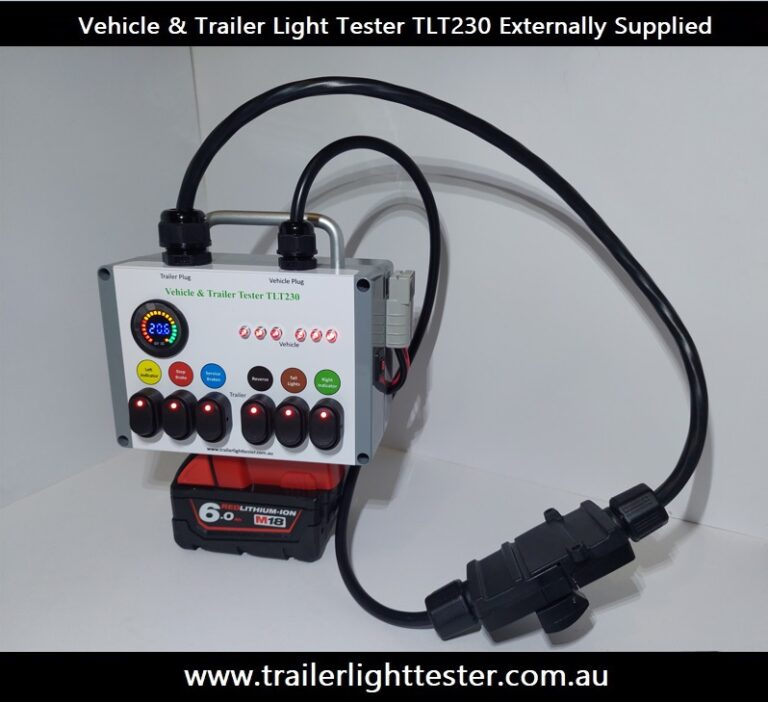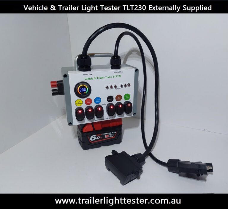 Is the perfect vehicle and trailer light tester where you have your own source of supply connecting to it via a battery, a power supply, a SB50 Anderson plug, a Milwaukee power tool battery. For the vehicles trailer plug side the vehicles power source at the vehicles trailer plug will supply the vehicle plug side of the trailer light tester.